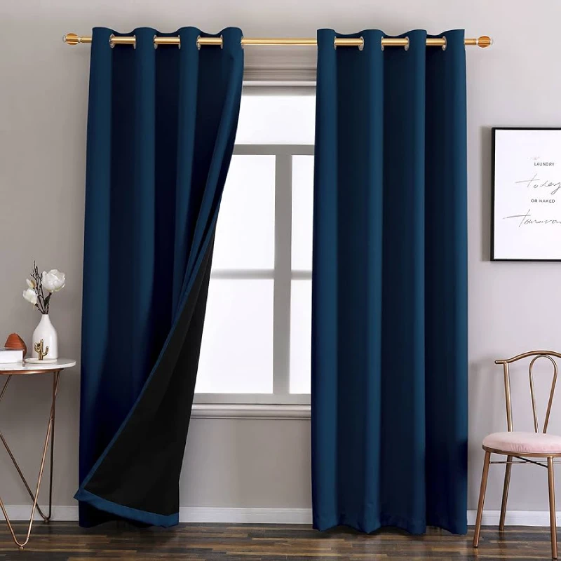 Polyester and acrylic fabrics are perfect for blackout window coverings. Seude is also a good fabric for heavy-duty work. You can also pair linen and cotton sheer curtains with blackout lining for places like living rooms, balconies, and high-roof apartments.